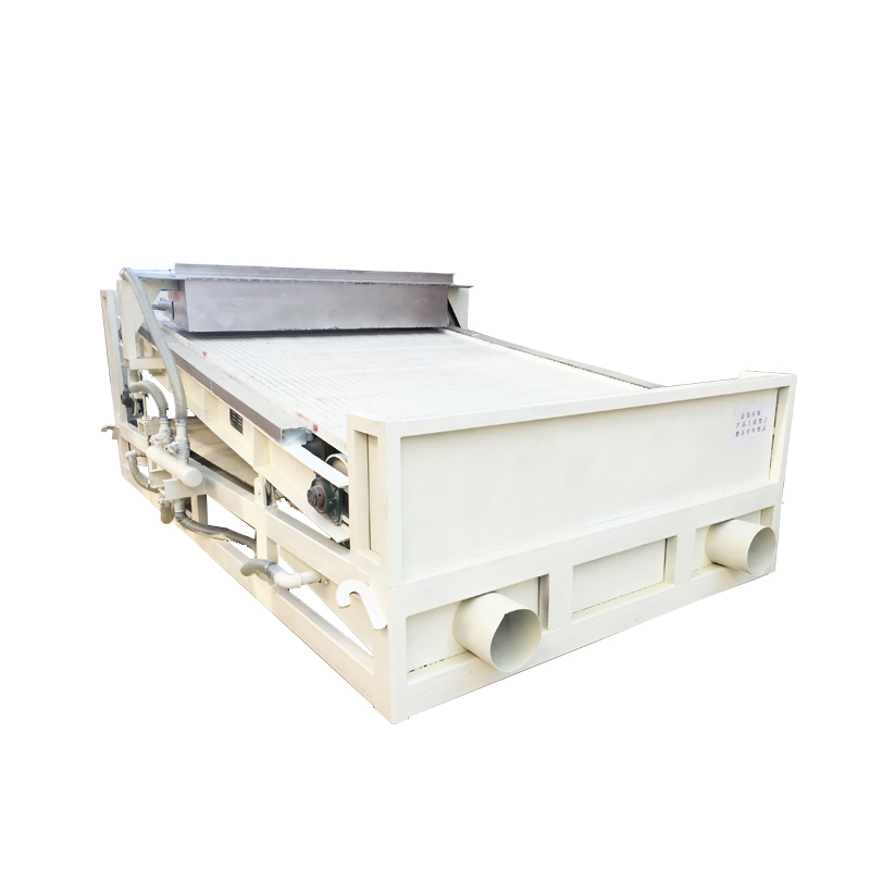 GTC平板式磁分離機主要由支架、板式磁選系統、入料攪拌系統、水源系統、卸鐵系統、調節系統等結構組成。工作時,物料流向和卸鐵系統成反向逆流式,非磁性物質利用物理學結構原理自流至出料口,經卸礦沖洗達到完全卸干凈的目的。磁性物質經長距離、長區域、多次數被強磁場吸附,經卸鐵系統逆向運轉至出鐵口,經卸礦沖洗達到完全卸干凈的目的。